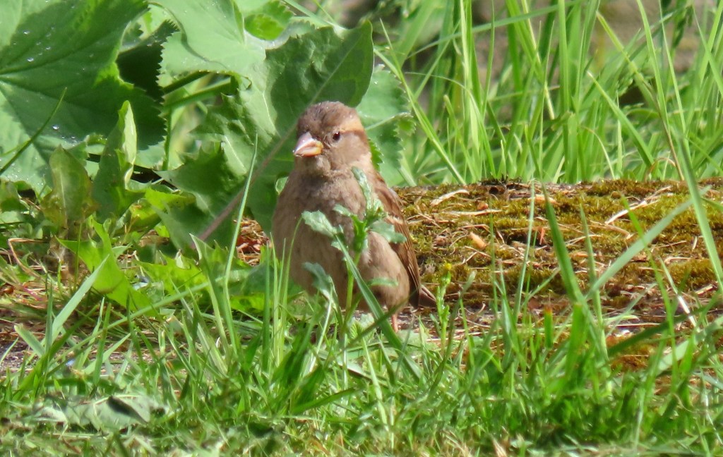 The male (Mr) and the female (Mrs) have different plumage. Both are brown birds, with striped wing feathers (one child described them as tiger birds) but the male is darker and has a grey cap, dark brown cheeks, a black ‘beard’ and a pale breast, where the female is more uniform light brown wih buff breast.