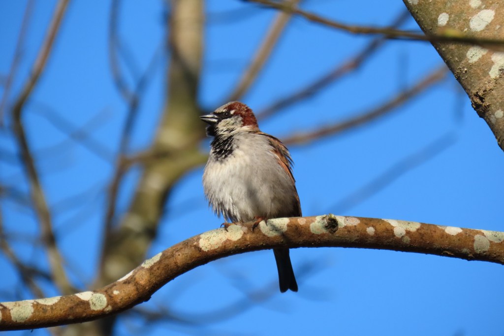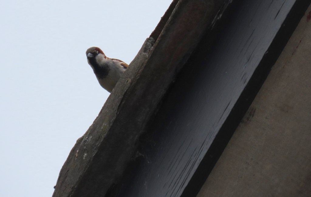 House sparrows are always on the alert for danger. There must be a ‘signal’ chirp for them all to take cover, for suddenly all the sparrows will rise up and vanish. I have noticed that there seems to be a ‘guard’ sparrow constantly on the lookout. The one below was giving me the beady eye the whole time I was watching them!