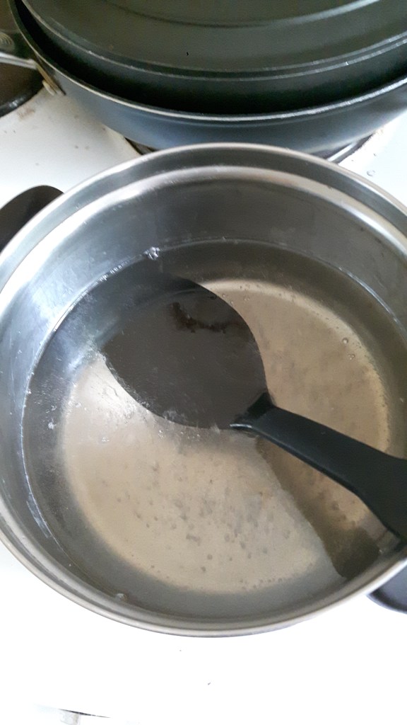 2. Empty water and sugar into your saucepan and heat gently, stirring often, until the water is clear. Boil for a moment, then remove from heat and cool: