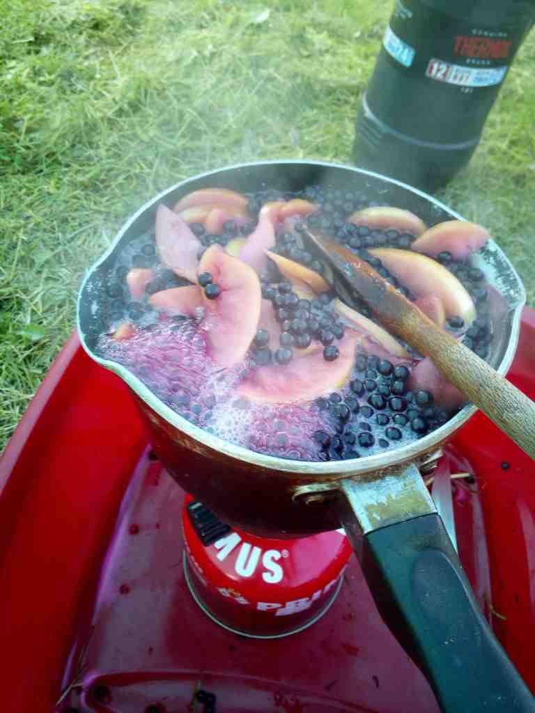 2. Put water, berries and apples in saucepan and bring to the boil. Cook for 20-30mins :