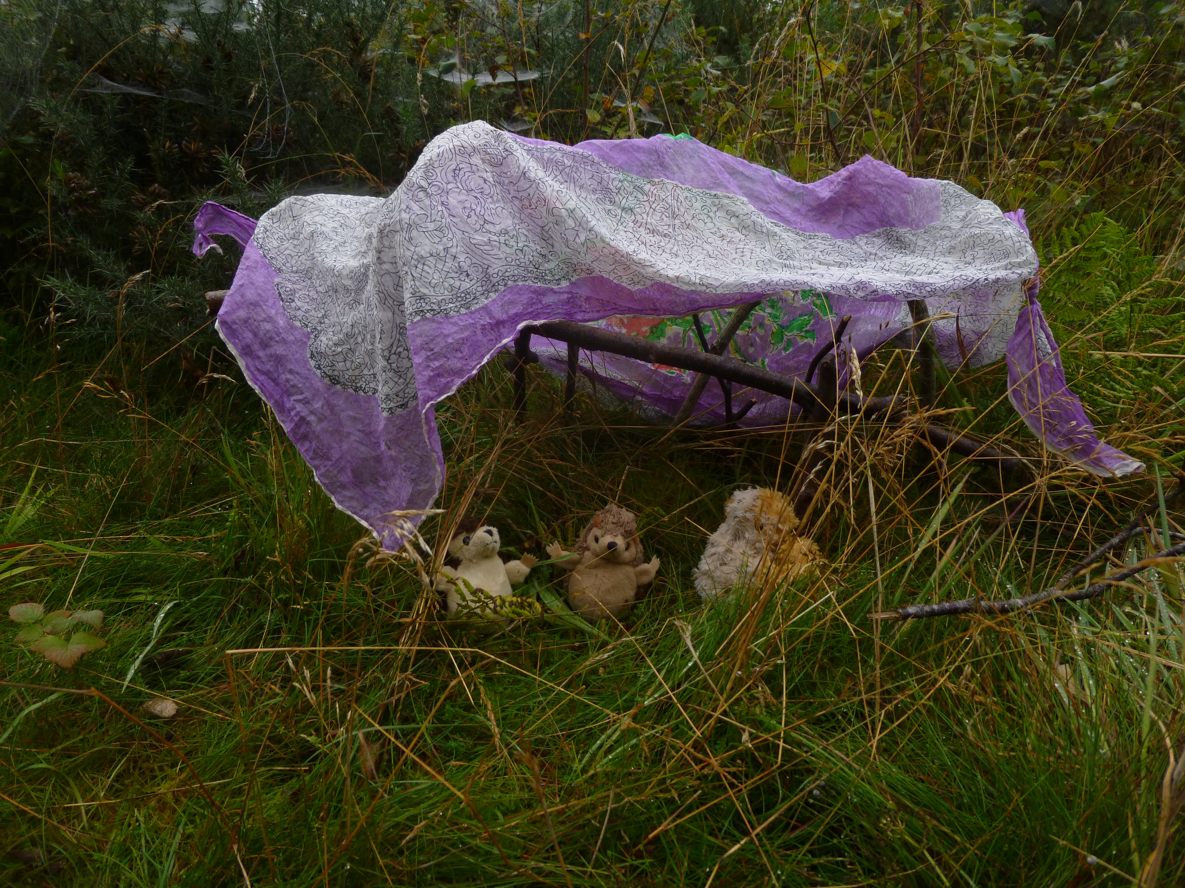 I work with many people in nature, from simple story walks – seeing what we can discover on route, enhanced by stories and song, or being in a place to settle in and play, make fire, cook, whittle, find, create pattern, watch spiders scuttle and hear birds sing.